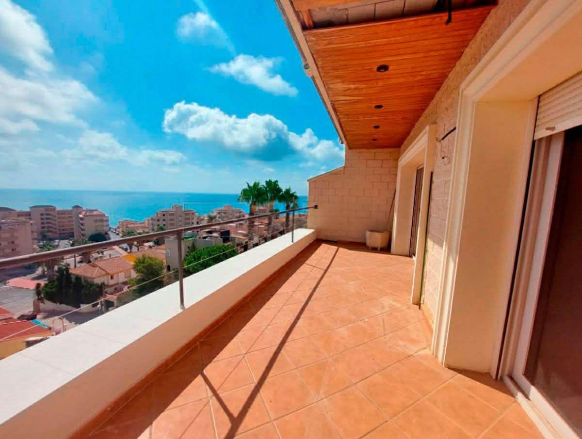 On the second floor, there are three bedrooms, two bathrooms, and a terrace with sea views. The attic offers a cozy space with its own bathroom.